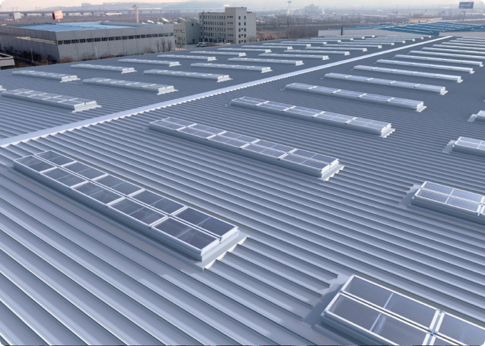 使用產(chǎn)品:三角型排煙天窗+圓拱型固定采光天窗